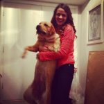 This is Addie–she’s a guide dog-in-training that my family is training right now. She didn’t really like to be picked up, and she got her fur all over me.