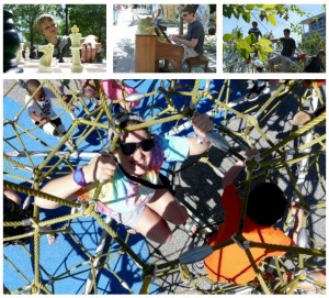 One of my favorite parts of Dallas was when we released our inner children at the Klyde Warren Park. A capella groups, adorable children, splash zone, oh my! Food trucks lined one side of the park, which is situated over a freeway, and the place was packed with people flying kites; walking dogs; playing pianos, chess, or checkers; reading free book; watching their kids on the jungle gym… this place was amazing! In one section, you could even trade in your ID for a few hours to “rent” materials for croquet, volleyball, and other assorted sports!