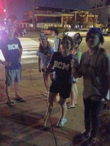 As we entered donut heaven, we cried, “We’re here for our booty!” I think that the Krispy Kreme employees were thoroughly amused serving people who would be ridiculous for the sake of free food. We amassed a grand total of six dozen donuts. Within five minutes, we probably cleared a whole box in celebration.