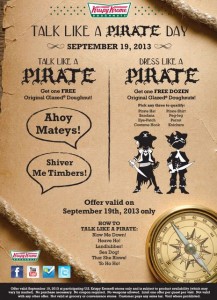 Yesterday, the whole world celebrated a very select group of people: pirates. International Pirate Day, which was observed on September 19, allowed our inner pirates to be free for a little while. Shiver me timbers! And of course, we pirates sought hidden treasure, so we looted Krispy Kreme!