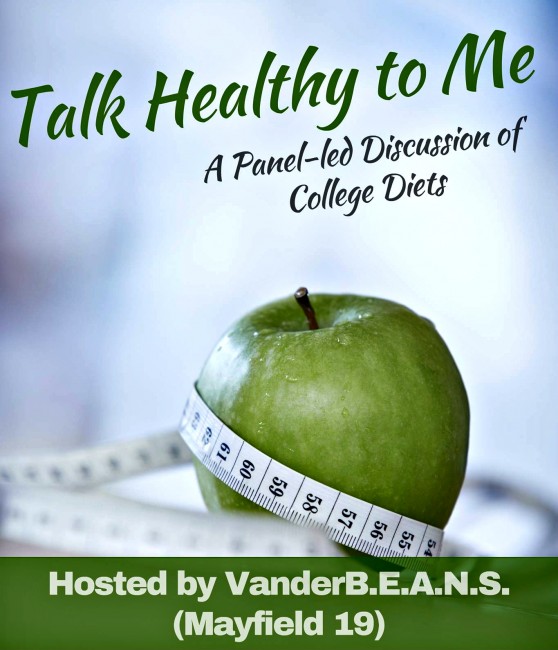 Last Tuesday, I joined the lovely people of Mayfield 19, a.k.a. VanderBEANS, for a panel-led discussion of nutrition for college students. The event, Talk Healthy to Me, featured guests Sarah Eanes, a Vanderbilt dietetic intern, and Marilyn Holmes, an R.D. and associate director of the Vanderbilt Recreation and Wellness Center. The goal was to discuss some of the nutritional challenges facing college students, and improve their working knowledge of some solutions.