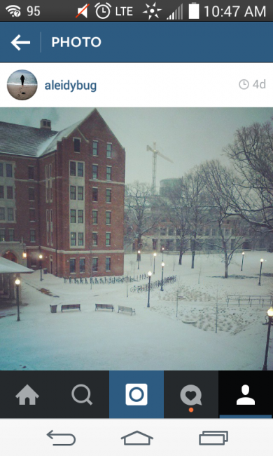 I know that many people had fun enjoying the conditions, hopefully staying safe outside or staying inside with friends to watch movies and socialize in the warm indoors. However, by the third day when all my classes got cancelled once more because my professors couldn’t make it to campus I was ready to get back to my everyday pace of productivity, see unfrozen land and be able to walk briskly from one place to another as I’m used to around here (and as James likes to as well). Many of my regular meetings got cancelled for the week as well: